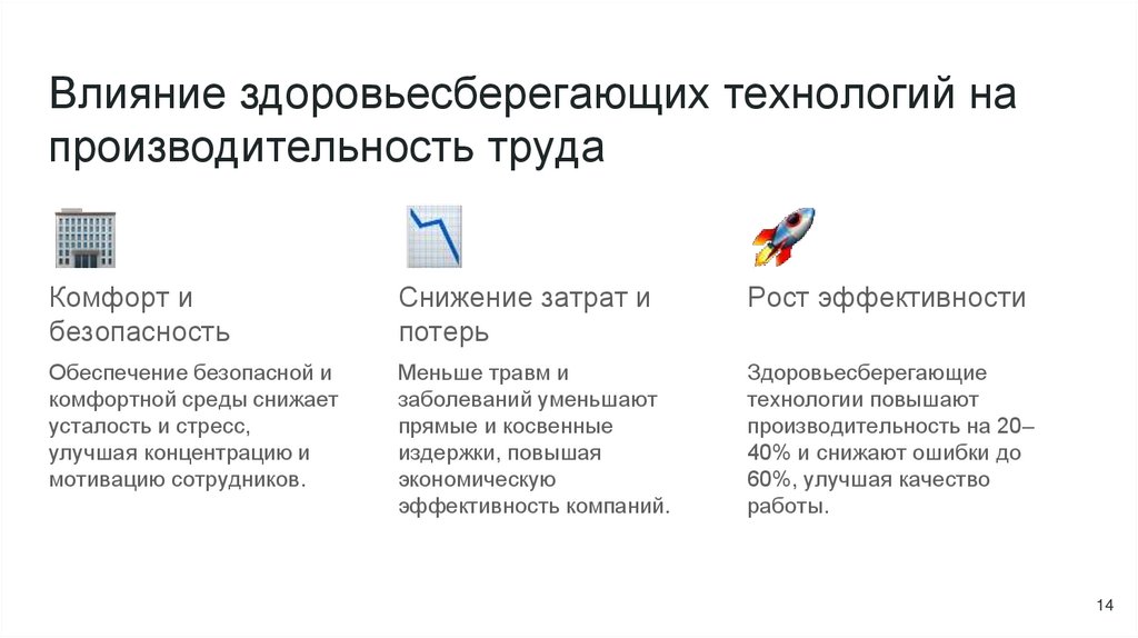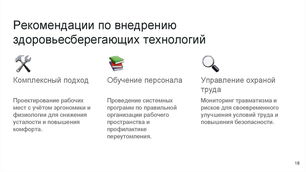 работы и стресса, что снижает их производительность. Важна интеграция здоровьесберегающих
