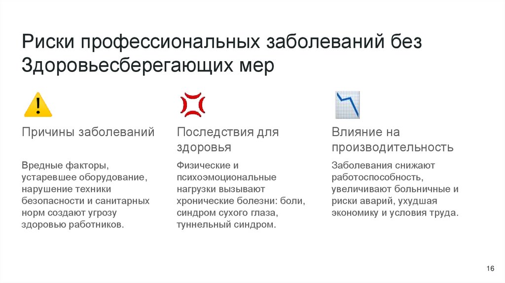 Риски профессиональных заболеваний безЗдоровьесберегающих мер