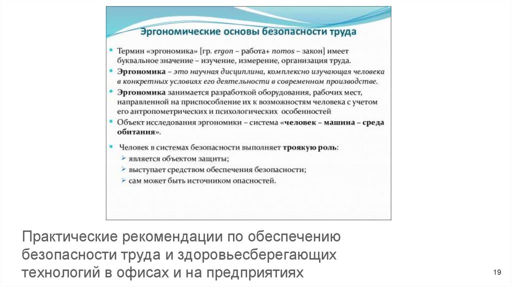 Практические рекомендации по обеспечениюбезопасности труда и здоровьесберегающих