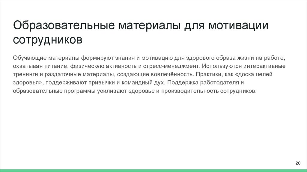 Обучающие материалы формируют знания и мотивацию для здорового образа жизни на работе,