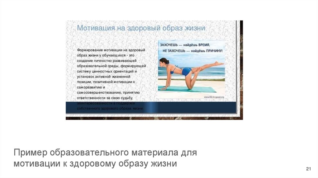 Пример образовательного материала длямотивации к здоровому образу жизни
