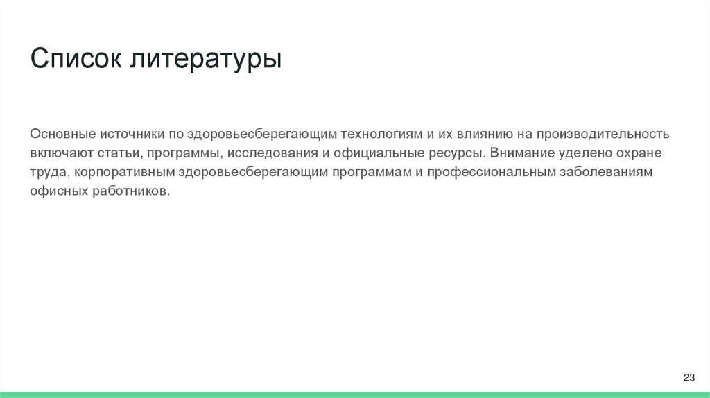 Список литературыОсновные источники по здоровьесберегающим технологиям и их влиянию на производительность