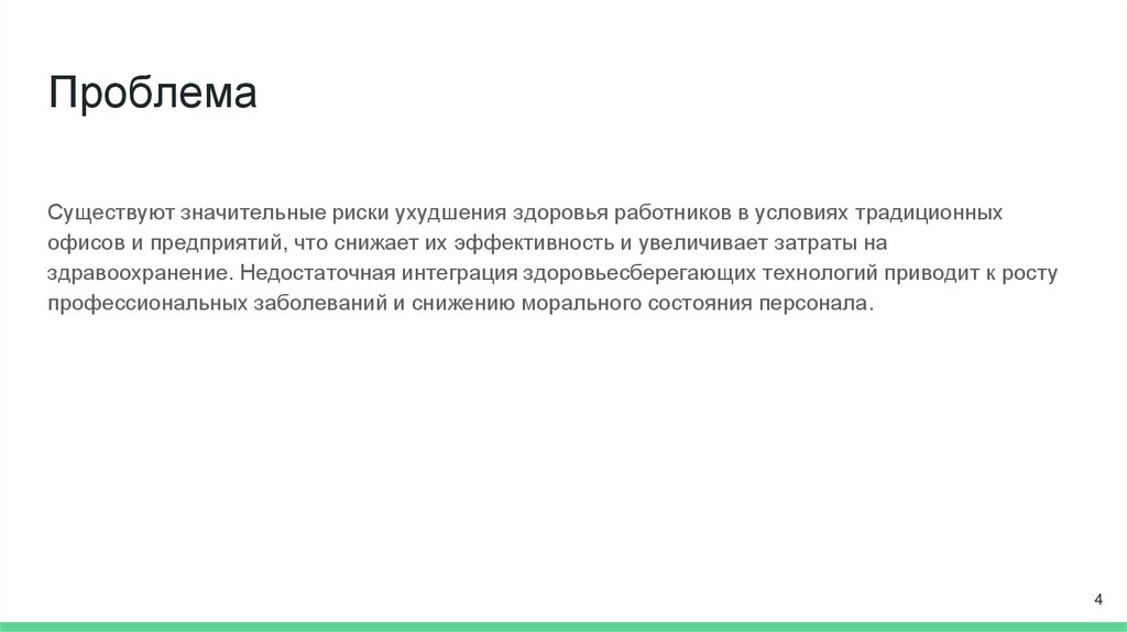 ПроблемаСуществуют значительные риски ухудшения здоровья работников в условиях традиционных