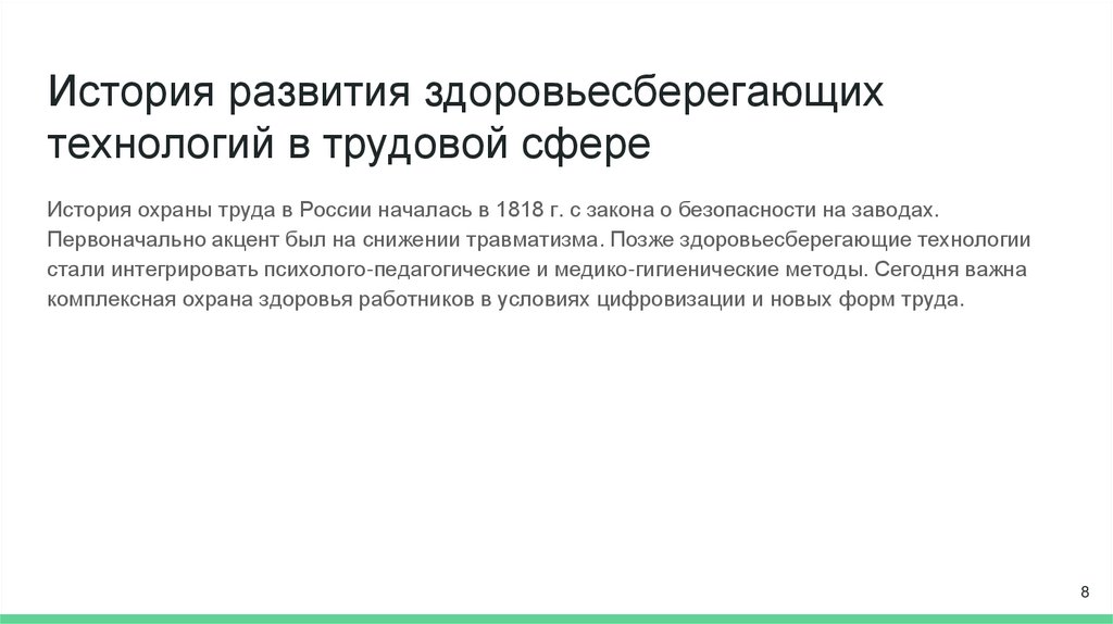 История развития здоровьесберегающихтехнологий в трудовой сфере