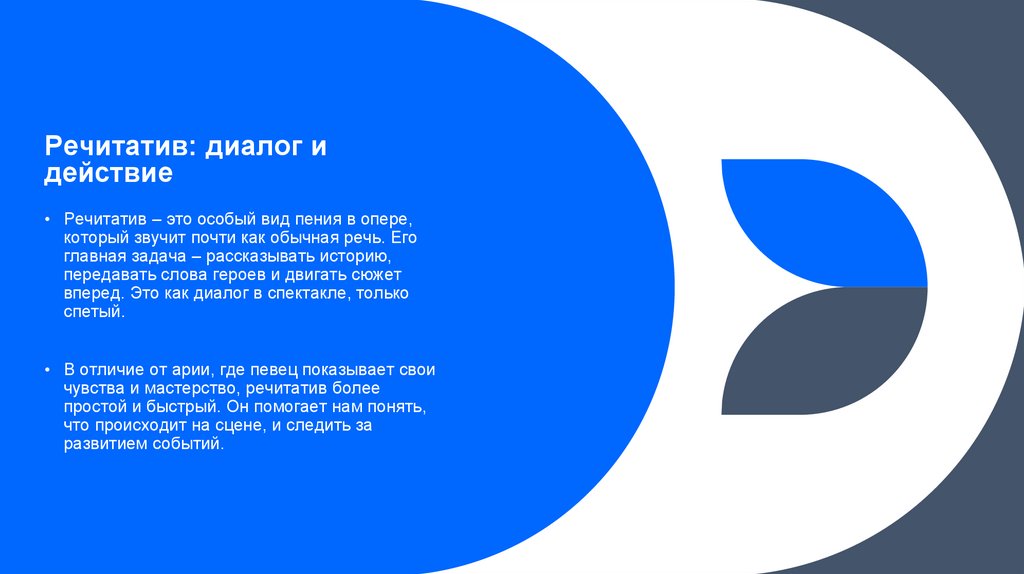 "ингредиенты" — это арии (красивые песни) и речитативы (почти как разговор, но нараспев).
