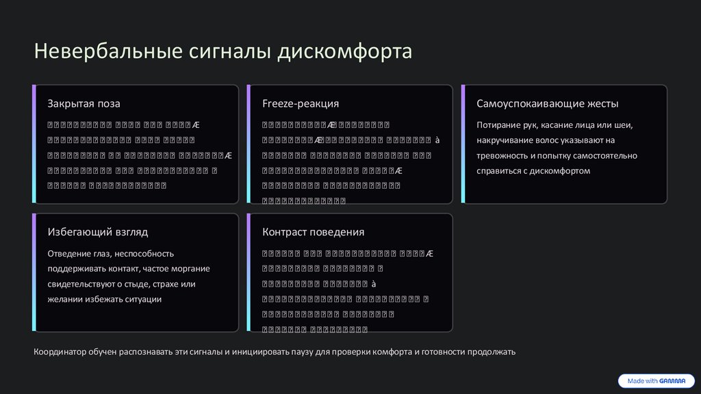 Координатор обучен распознавать эти сигналы и инициировать паузу для проверки комфорта и готовности продолжать