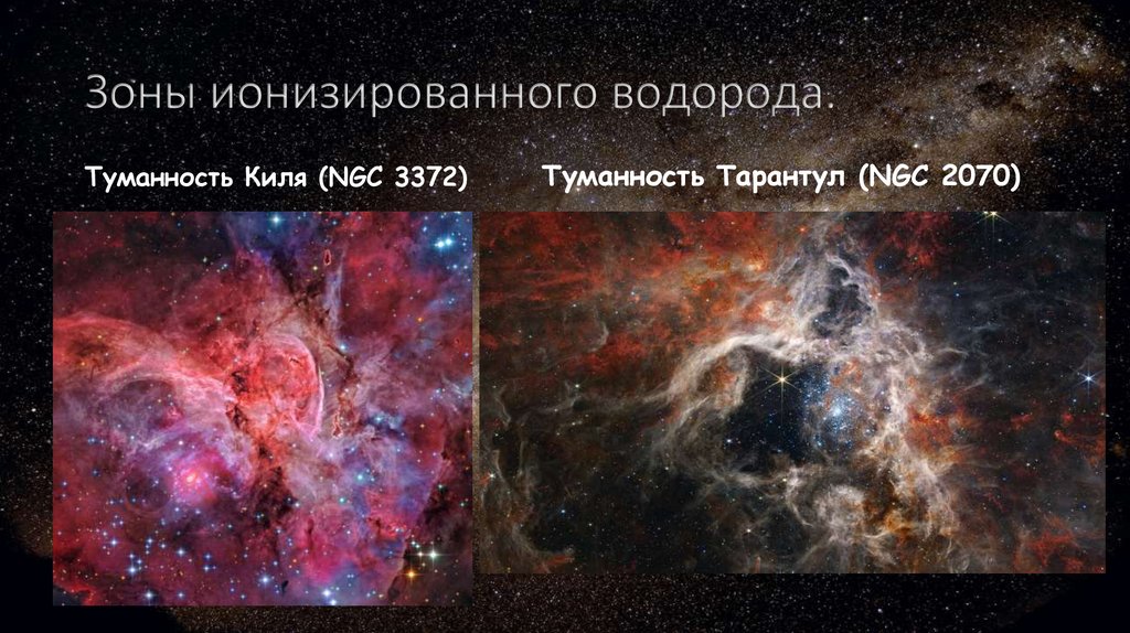 Зоны ионизированного водорода.Туманность Киля (NGC 3372)