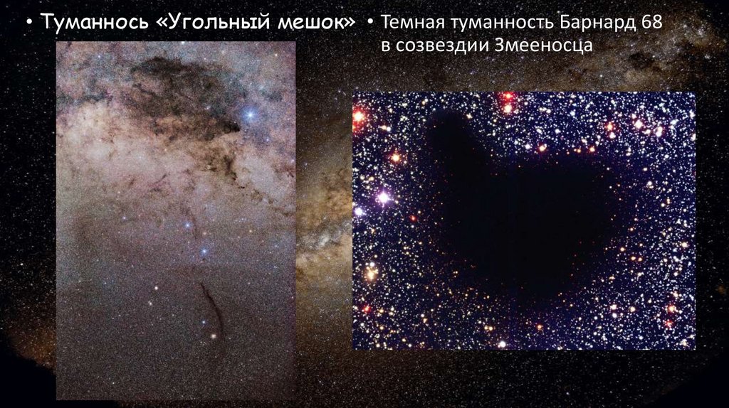 • Туманнось «Угольный мешок» • Темная туманность Барнард 68в созвездии Змееносца