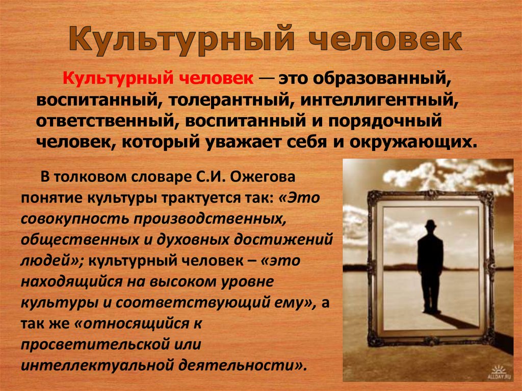 Культурный человек — это образованный,воспитанный, толерантный, интеллигентный,