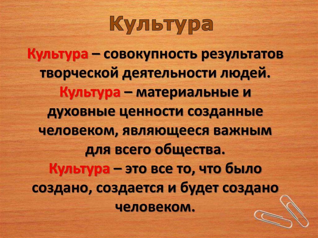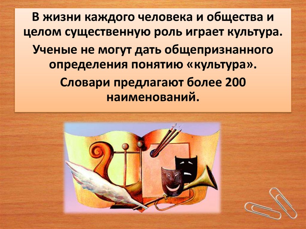 В жизни каждого человека и общества ицелом существенную роль играет культура.