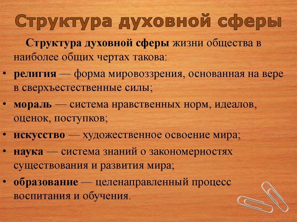 Структура духовной сферы жизни общества внаиболее общих чертах такова:
