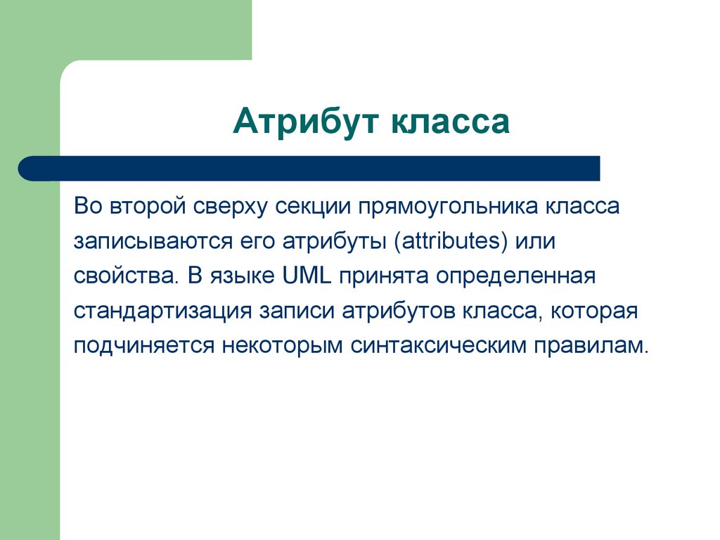 Атрибут классаКаждому атрибуту класса соответствует отдельная