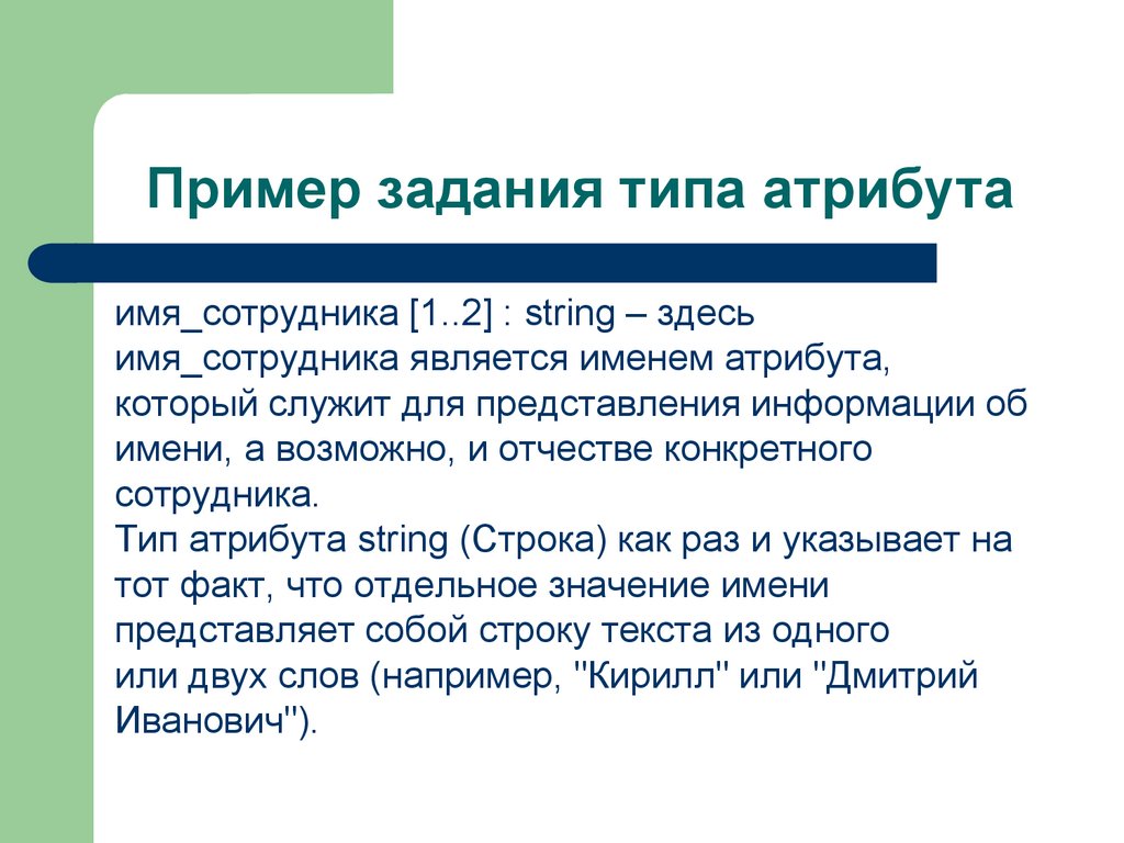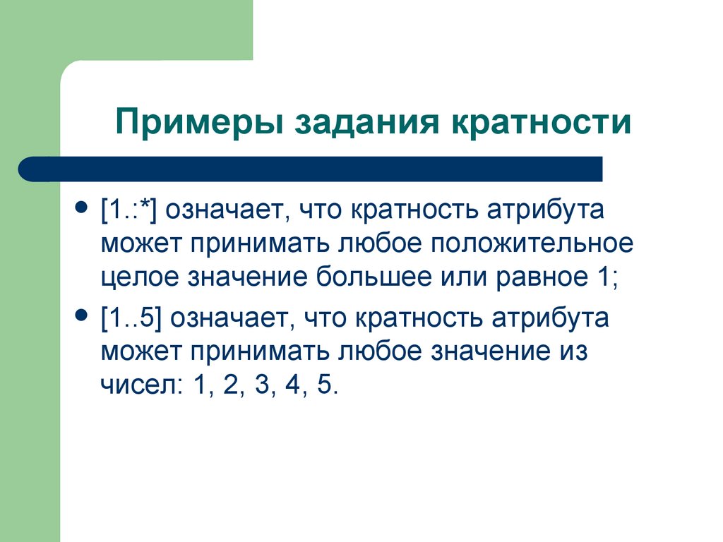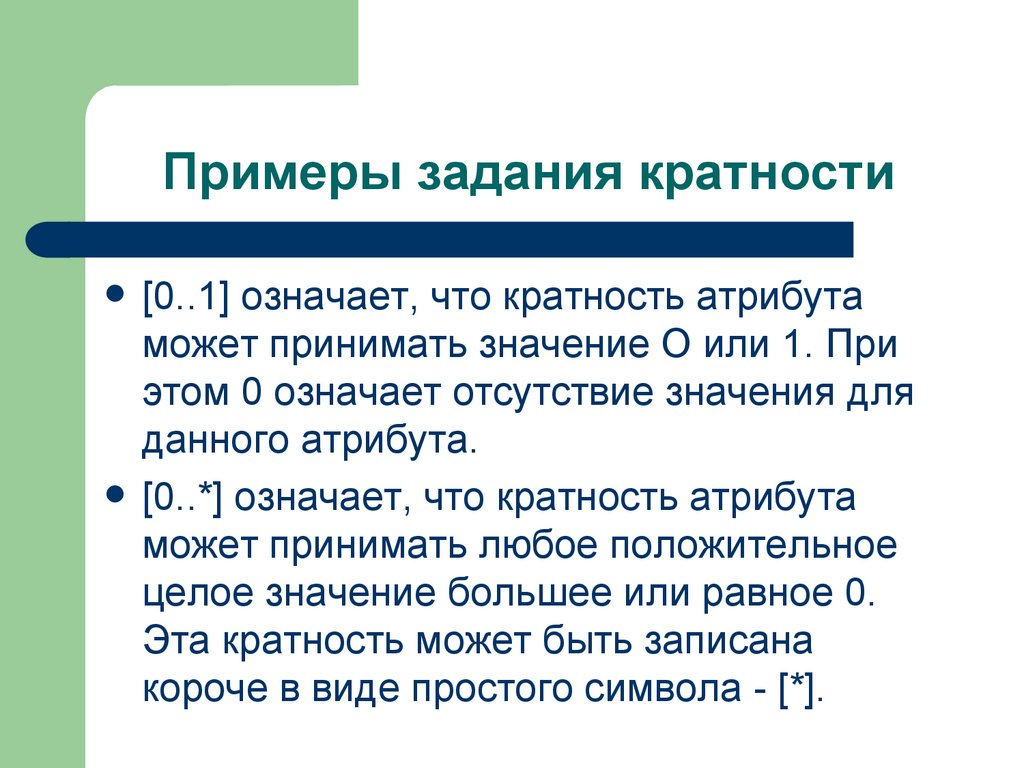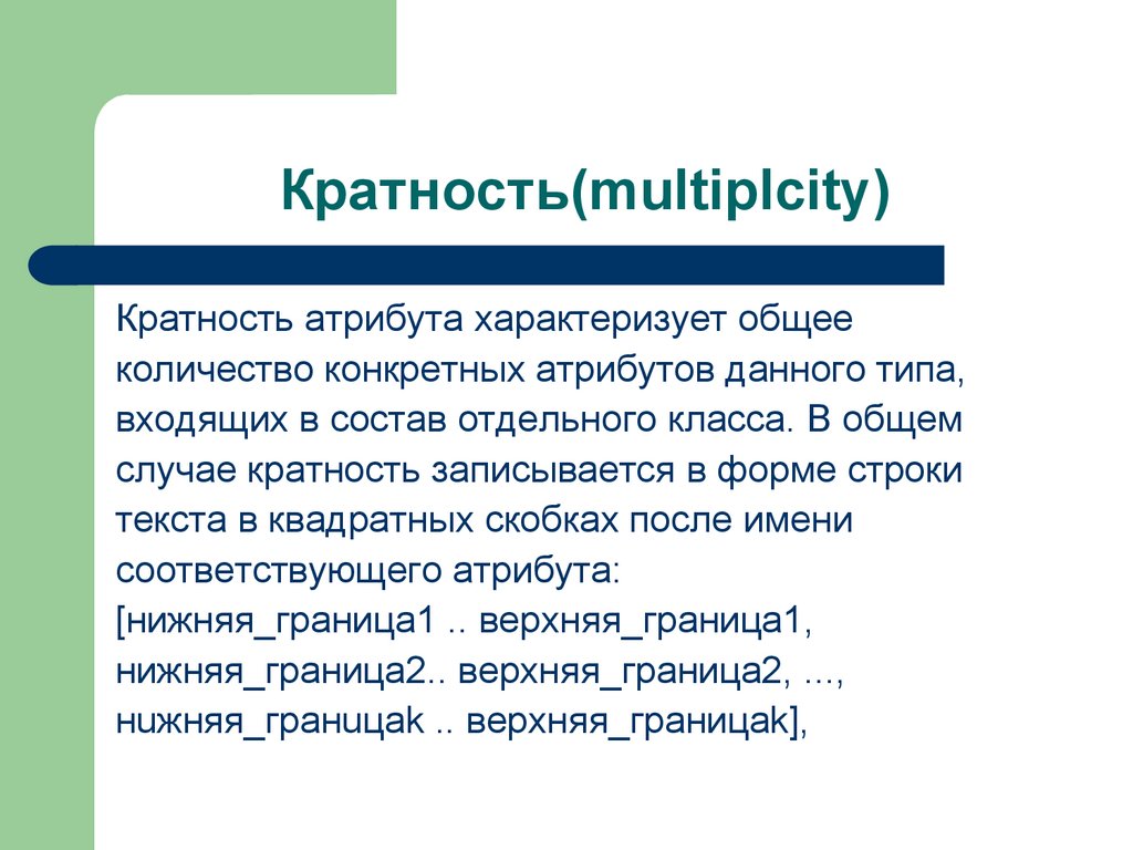 кратности, типа значений атрибута и, возможно, его