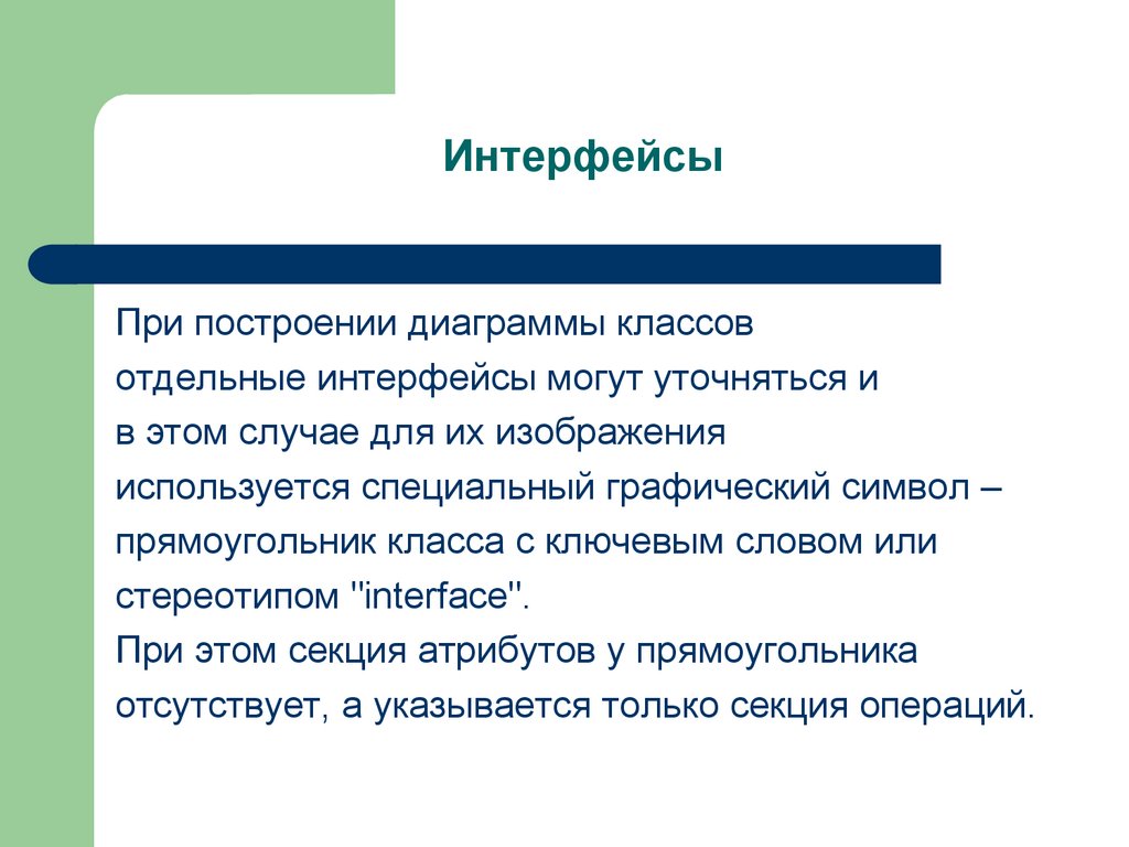 ИнтерфейсыПри построении диаграммы классов
