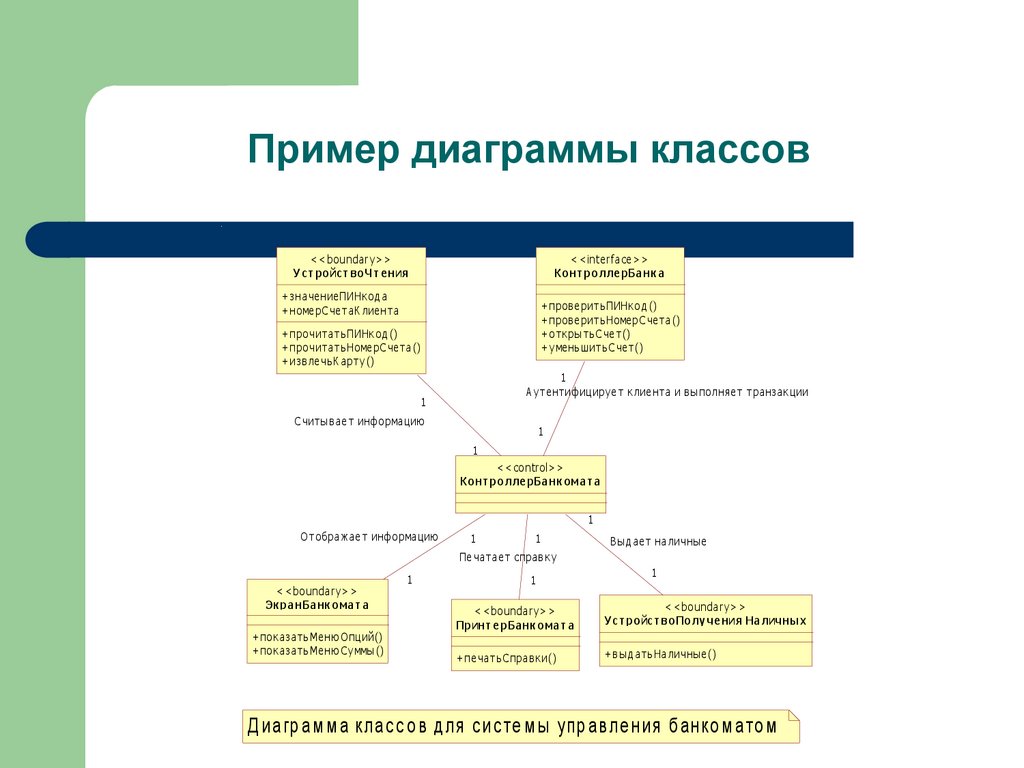 Д иагр ам м а клас с о в д ля с ис те м ы упр ав ле ния б анко м ато м