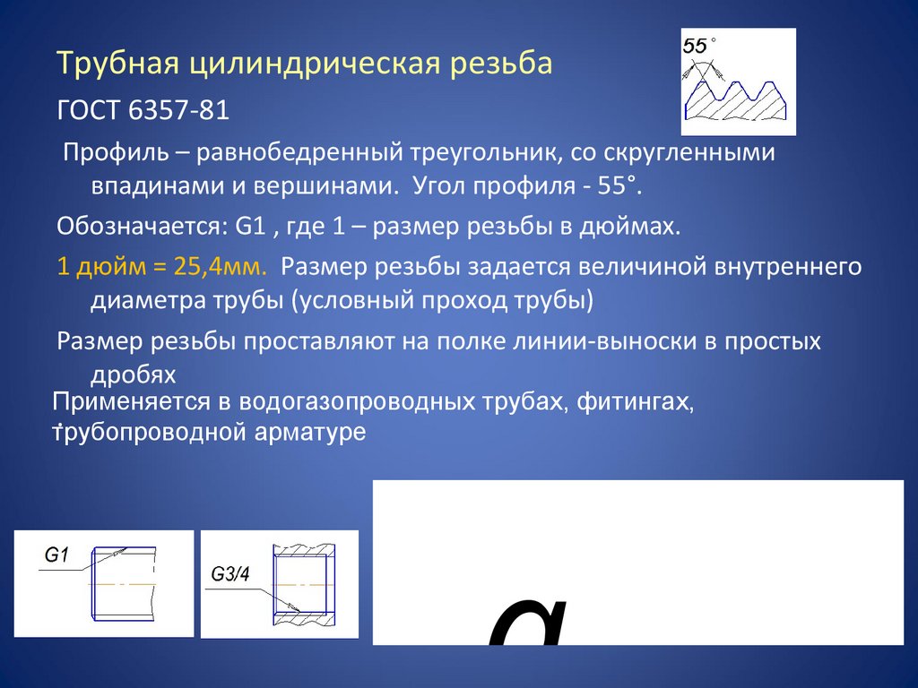 линии, т.е. наружного диаметра наружной резьбы и внутреннего