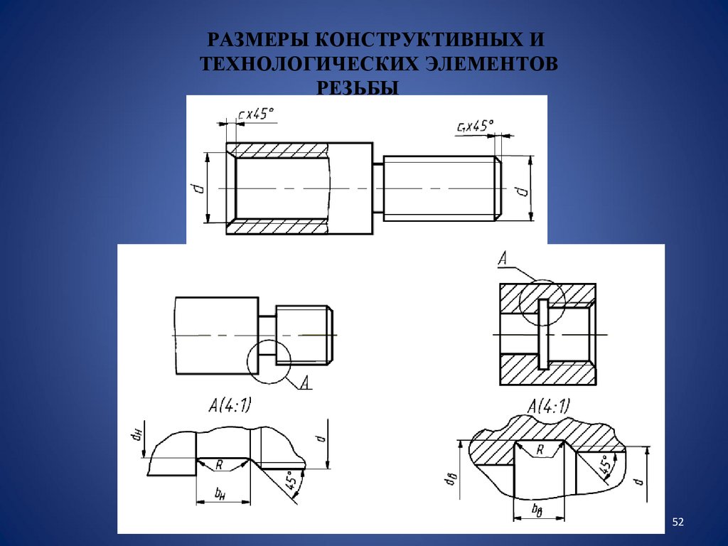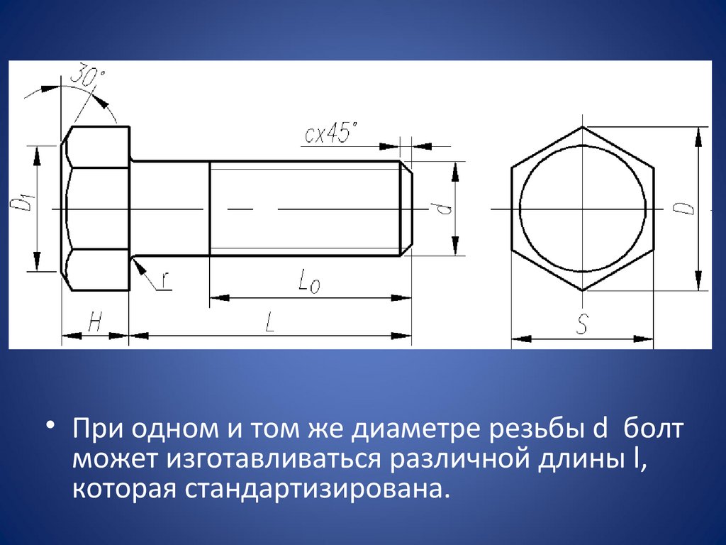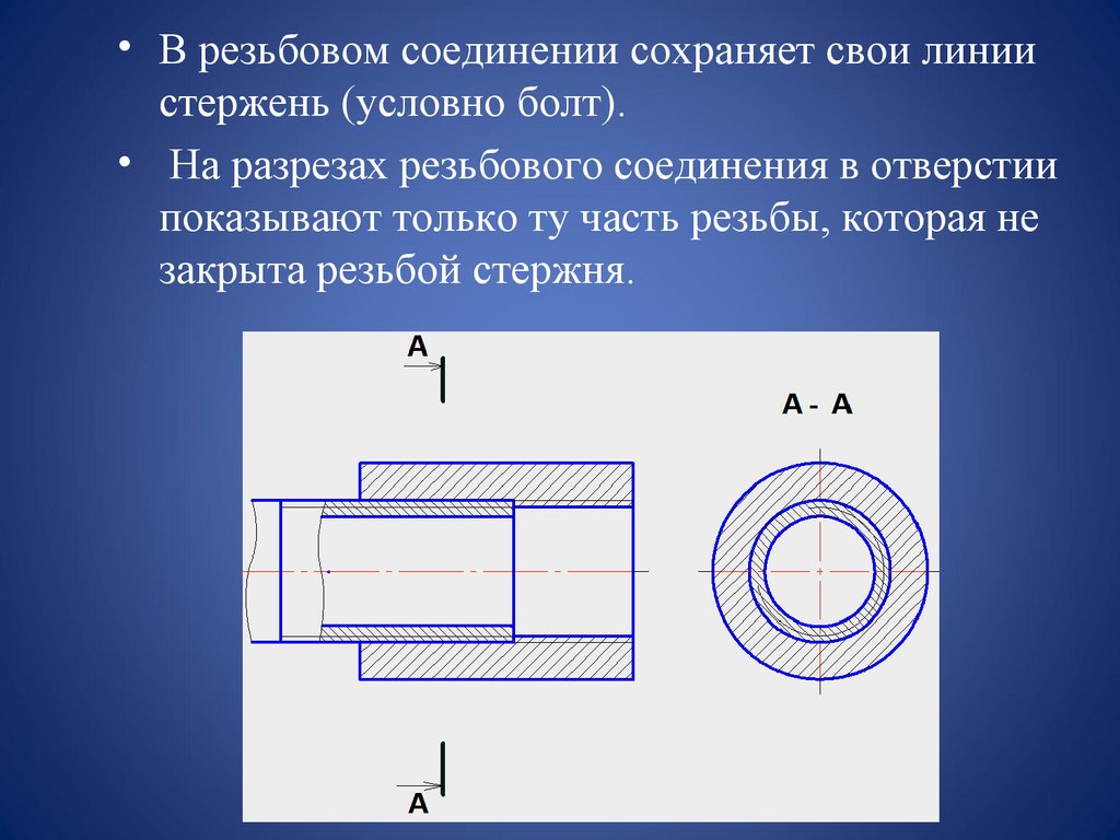 • В резьбовом соединении сохраняет свои линиистержень (условно болт).