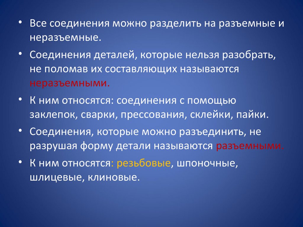 1. Лекция 8 - 9 Виды соединений. (разъемные, неразъемные)