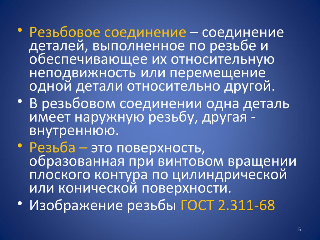 • Резьбовое соединение – соединениедеталей, выполненное по резьбе и