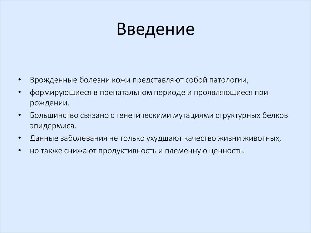 Введение• Врожденные болезни кожи представляют собой патологии,