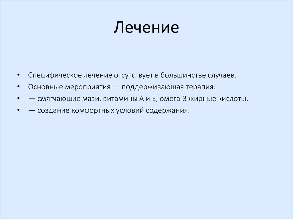 — смягчающие мази, витамины A и E, омега-3 жирные кислоты.