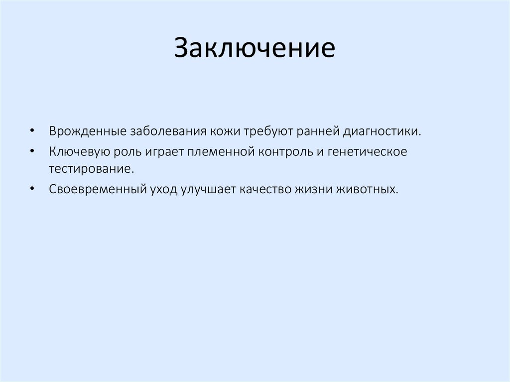 Заключение• Врожденные заболевания кожи требуют ранней диагностики.