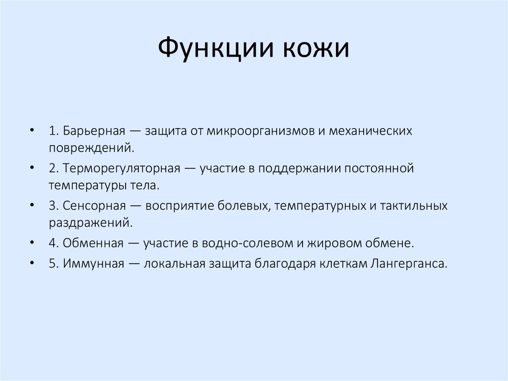 • 5. Иммунная — локальная защита благодаря клеткам Лангерганса.