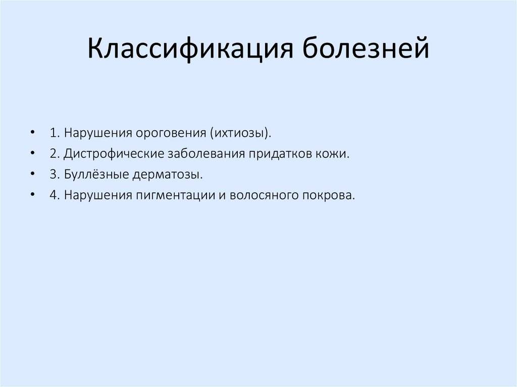 Классификация болезней1. Нарушения ороговения (ихтиозы).