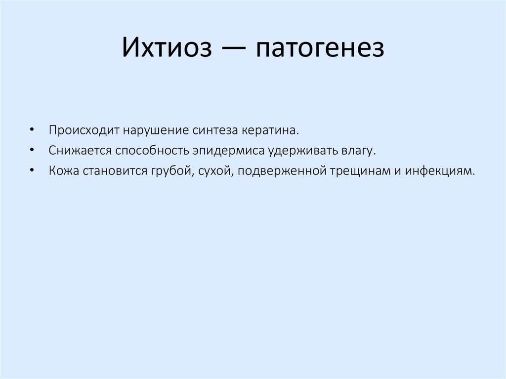 Ихтиоз — патогенез• Происходит нарушение синтеза кератина.