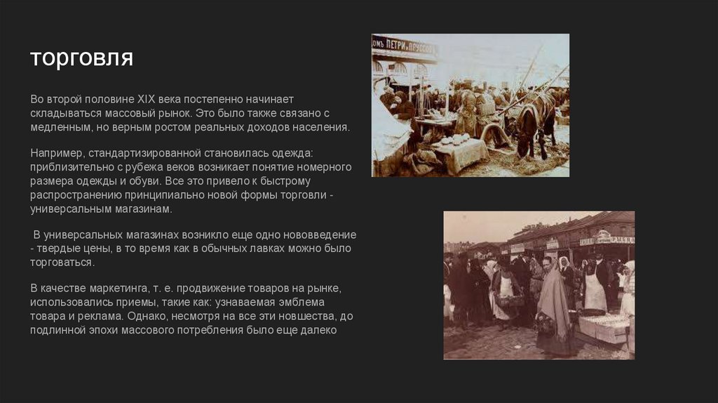 торговляВо второй половине XIX века постепенно начинает