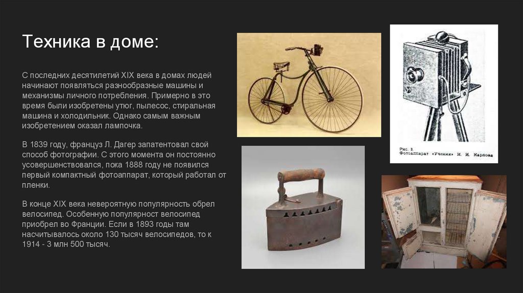 Техника в доме:С последних десятилетий XIX века в домах людей