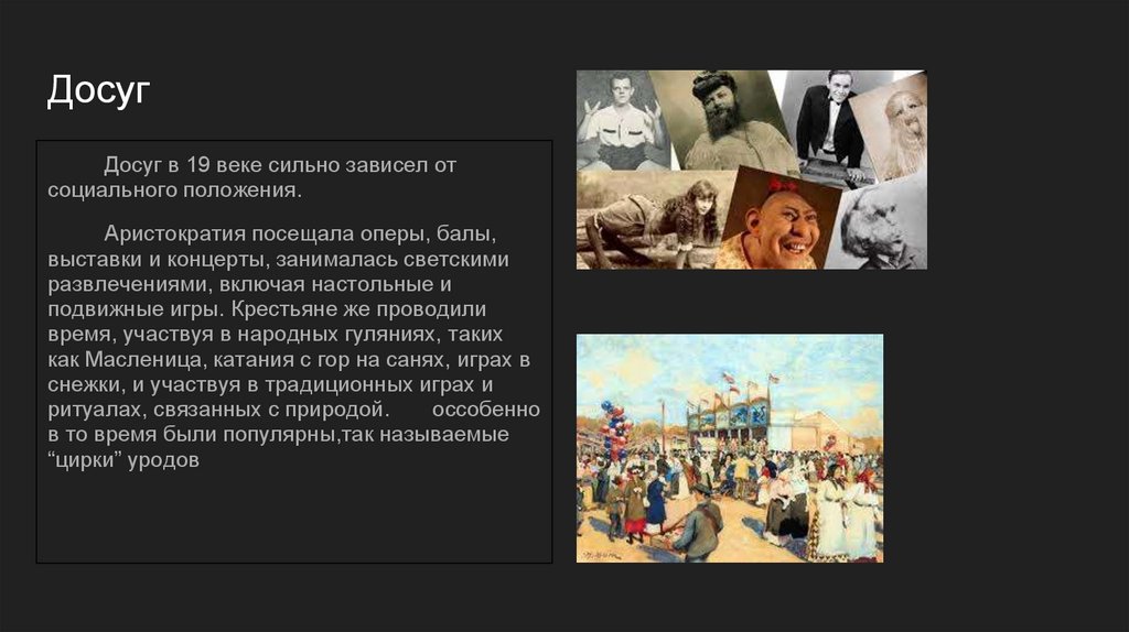 ДосугДосуг в 19 веке сильно зависел от