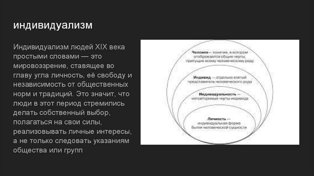 индивидуализмИндивидуализм людей XIX века