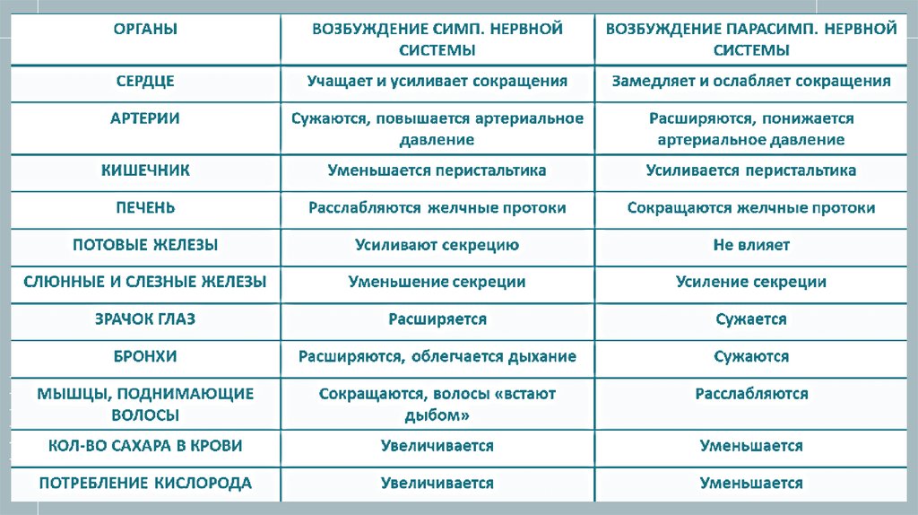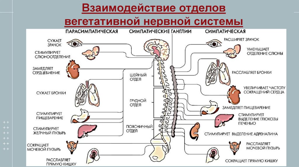 Влияние отделов вегетативной нервнойсистемы на работу внутренних органов