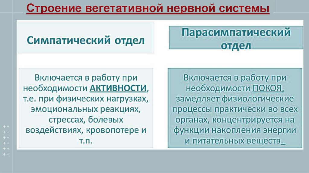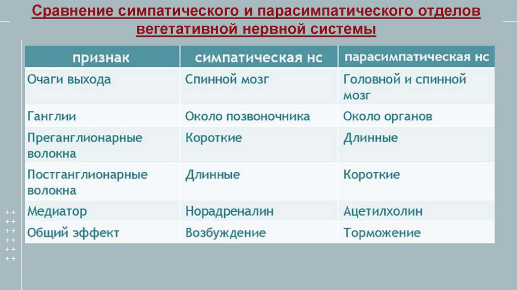 Сравнение симпатического и парасимпатического отделоввегетативной нервной системы