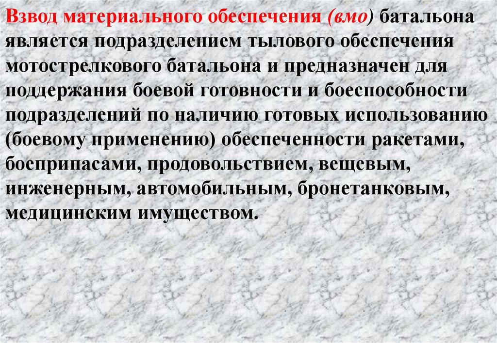 -взвода материального обеспечения (вмо);