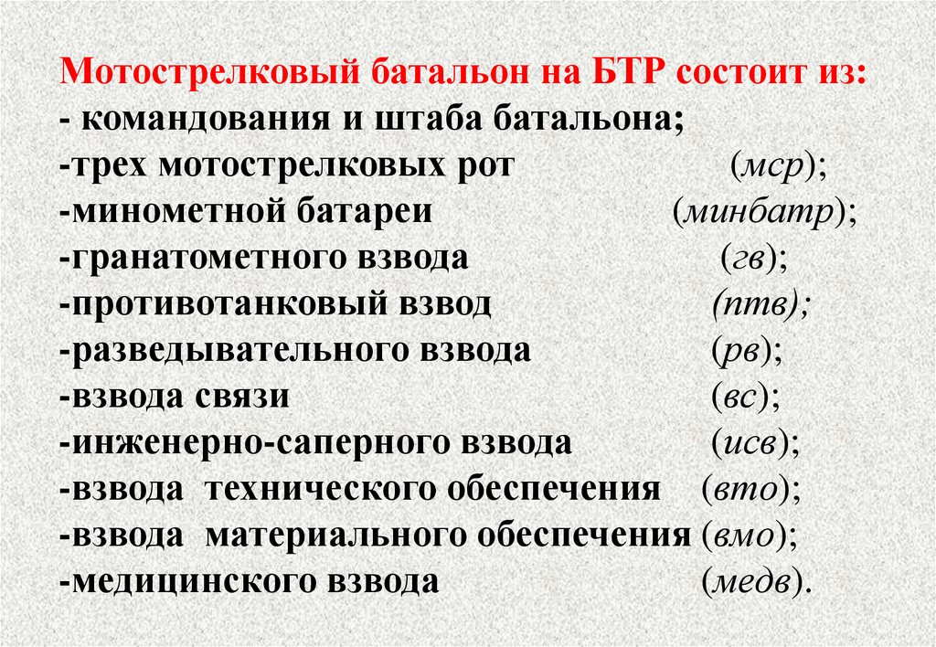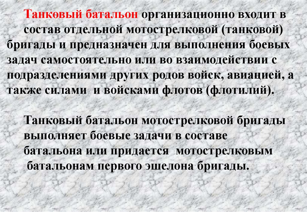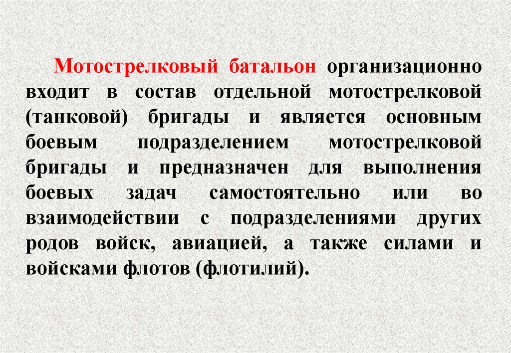 Мотострелковый батальон организационновходит в состав отдельной мотострелковой