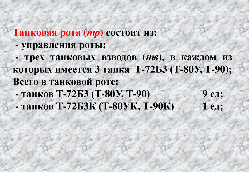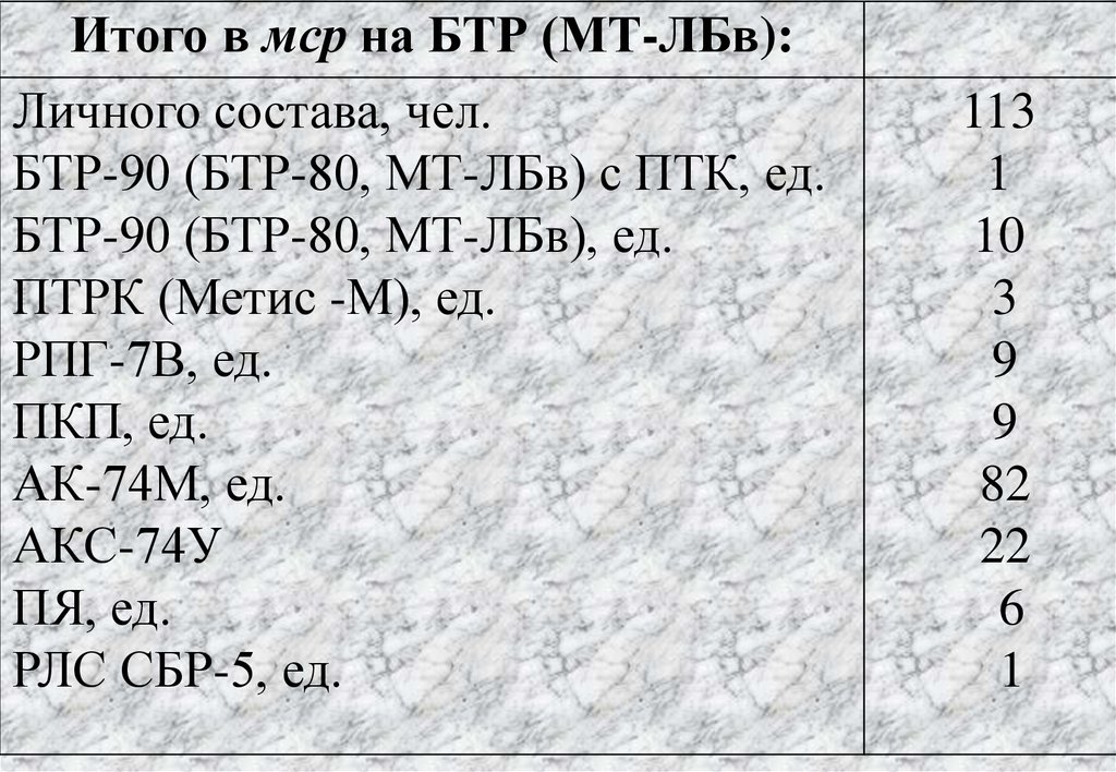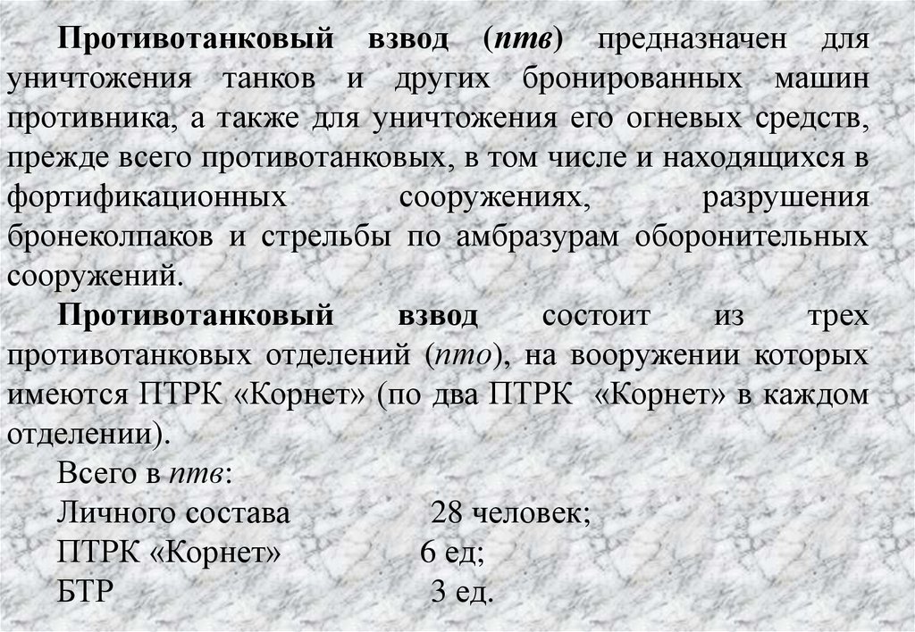 - мотострелковая рота (3 мсв, отделение ПТУР,