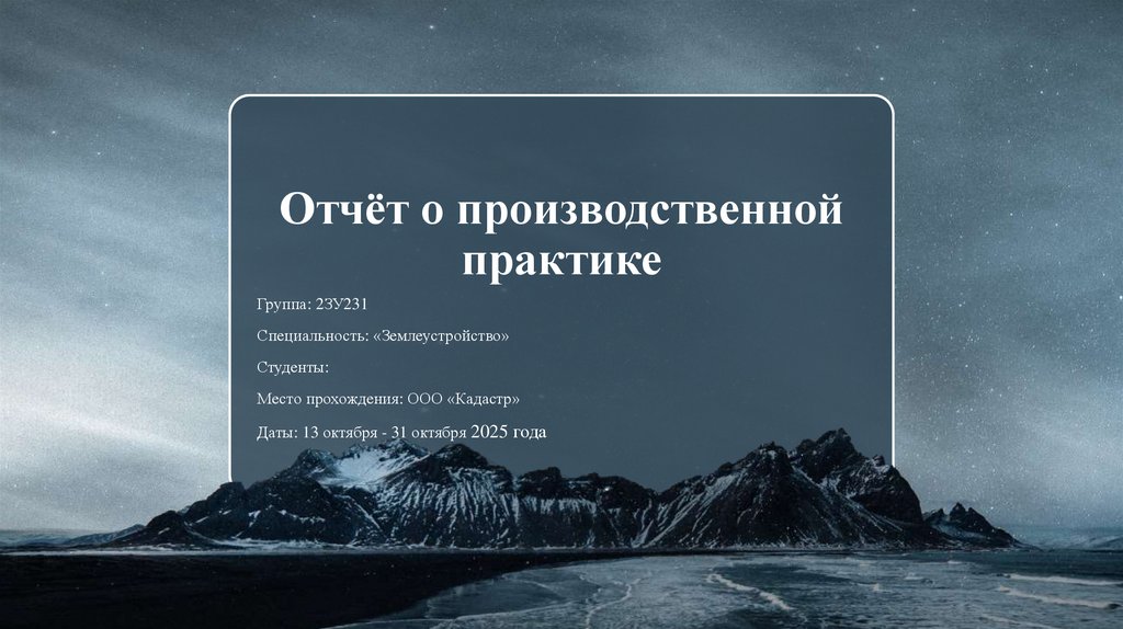 Группа: 2ЗУ231Специальность: «Землеустройство»