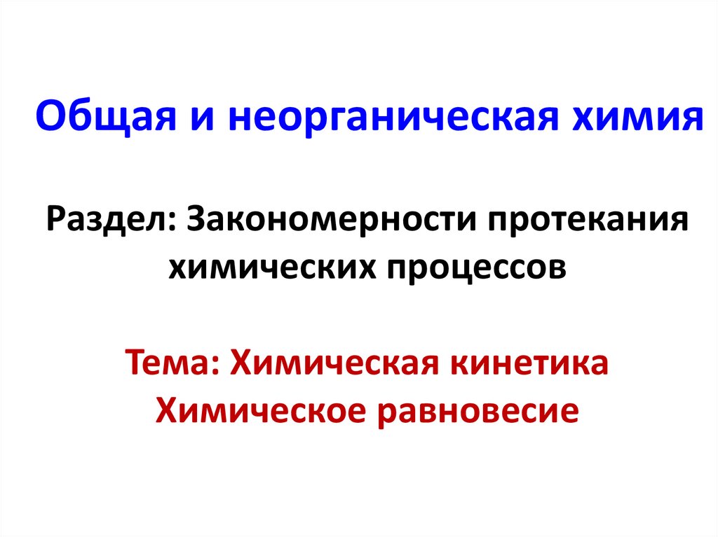 Общая и неорганическая химияРаздел: Закономерности протекания