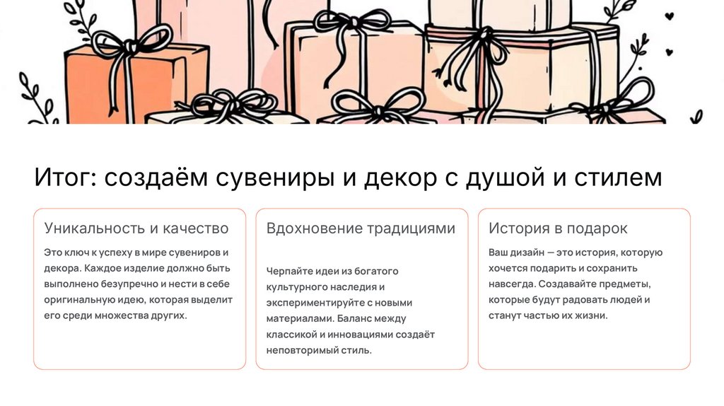 Итог: создаём сувениры и декор с душой и стилемУникальность и качество