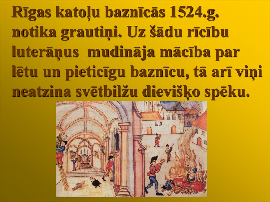 Rīgas katoļu baznīcās 1524.g.notika grautiņi. Uz šādu rīcību