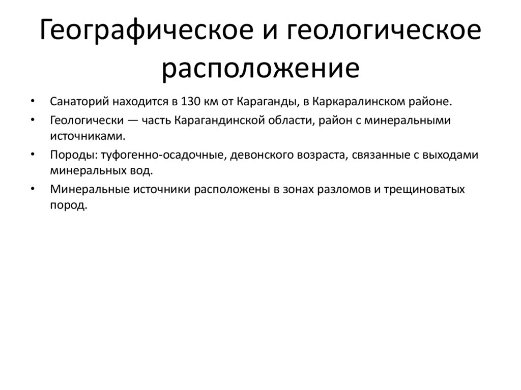 Санаторий находится в 130 км от Караганды, в Каркаралинском районе.