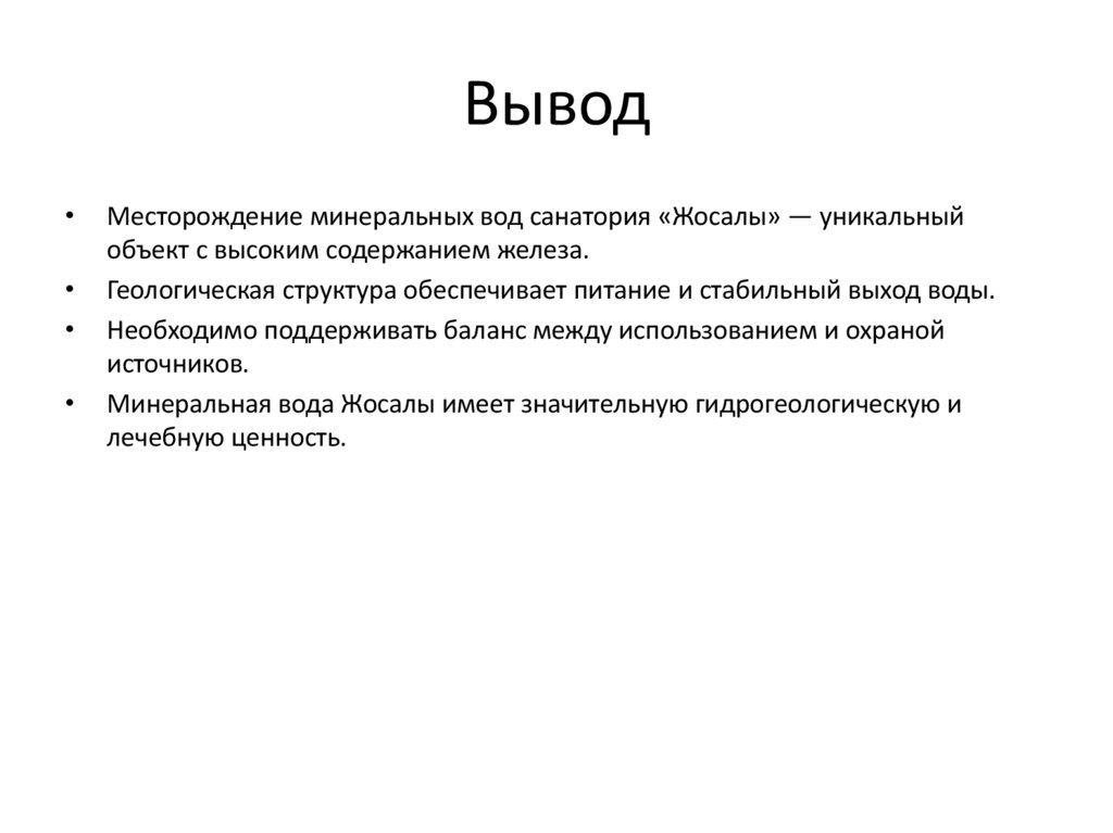 ВыводМесторождение минеральных вод санатория «Жосалы» — уникальный