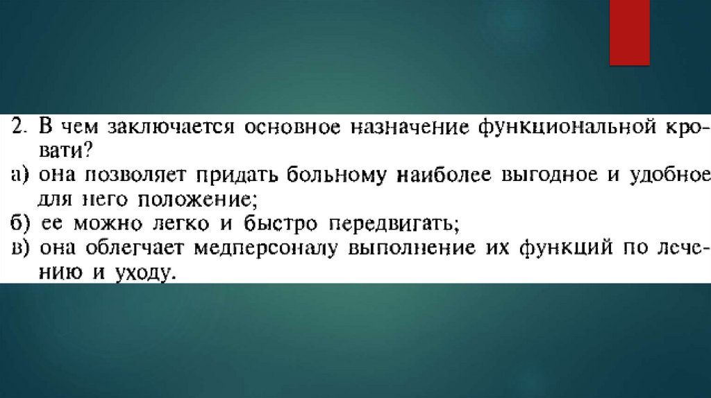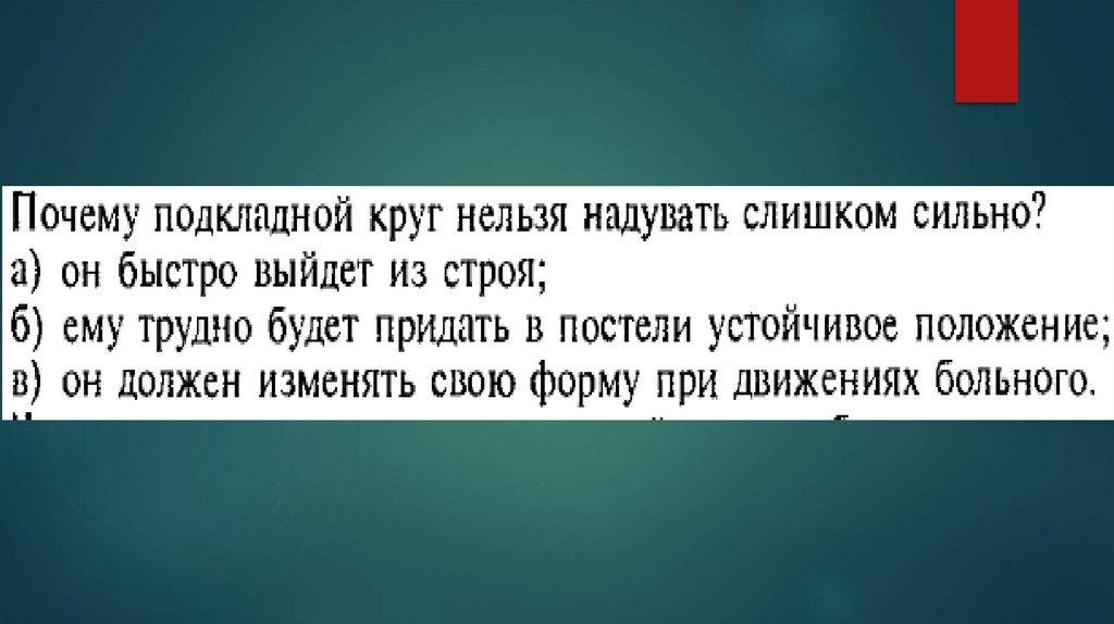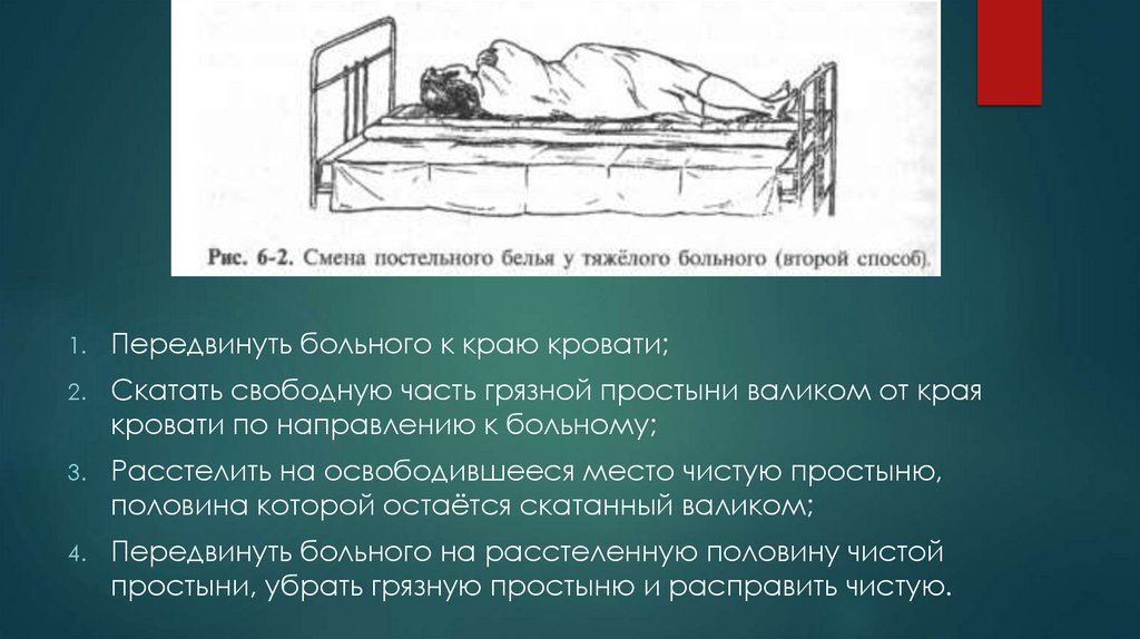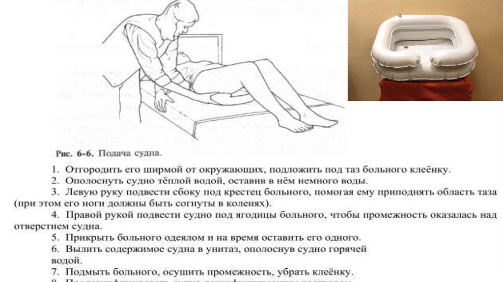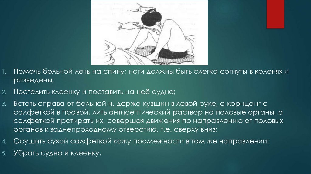 1.Помочь больной лечь на спину; ноги должны быть слегка согнуты в коленях и