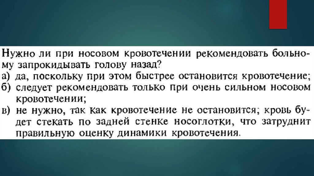1.Посадить больного перед собой и попросить его слегка запрокинуть