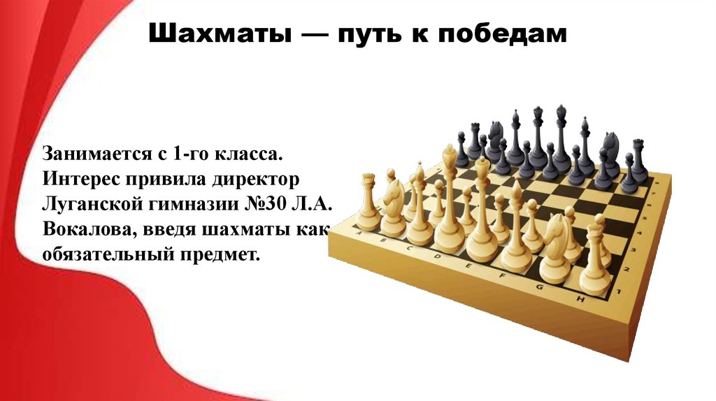 Шахматы — путь к победамЗанимается с 1-го класса.