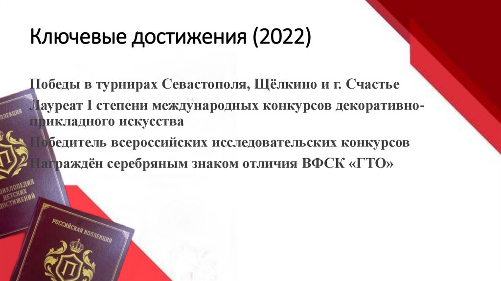 Ключевые достижения (2022)Победы в турнирах Севастополя, Щёлкино и г. Счастье