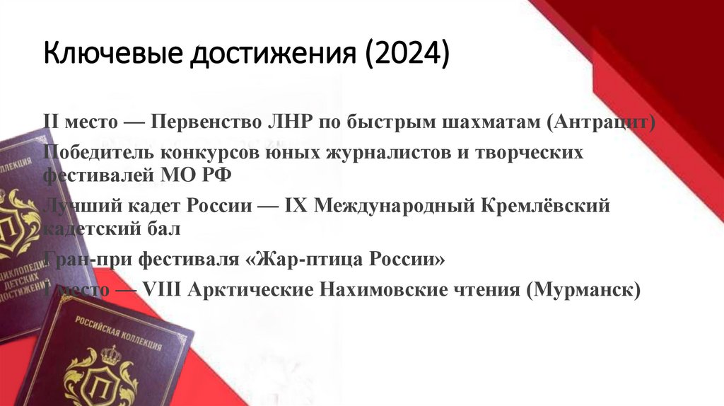 Ключевые достижения (2024)II место — Первенство ЛНР по быстрым шахматам (Антрацит)