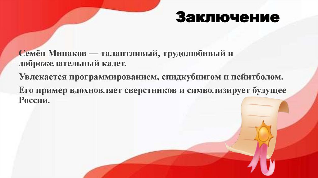 ЗаключениеСемён Минаков — талантливый, трудолюбивый и